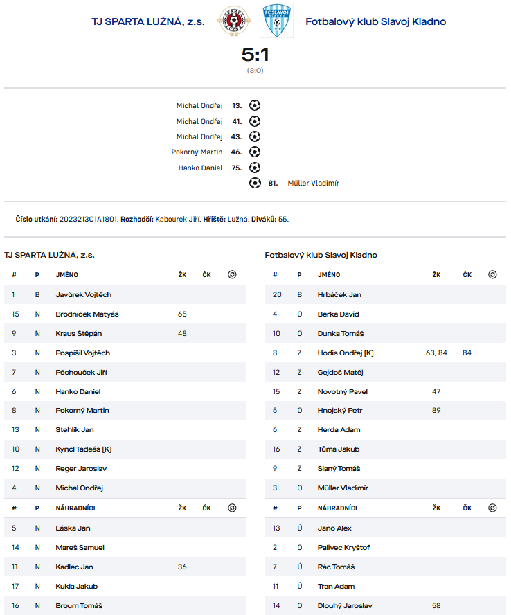 Dorostenci jeli v 18. kole na horkou půdu Sparty Lužná. Bohužel se nám nepodařilo vybojovat žádný bod a utkání jsme prohráli v poměru 5:1. Pokud se chceme udržet v čele tabulky, musíme v příštím utkání naplno bodovat.