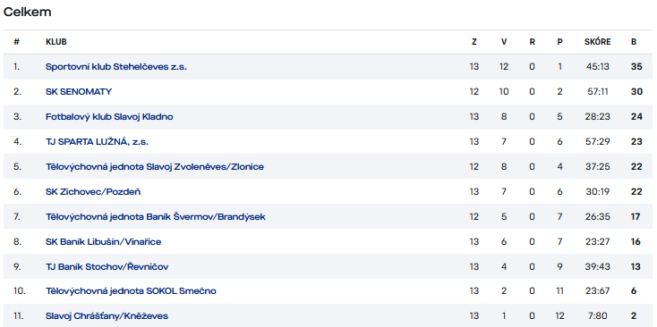 12. FK Slavoj Kladno A 0 0:0 0
